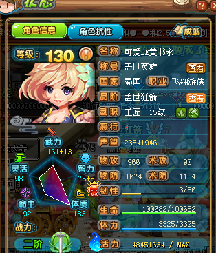 QQ三国SG6621蜀国141级男剑诗 武力50 智力9韧性32抗性50 50 49 天书80级带19级夫妻130女游侠