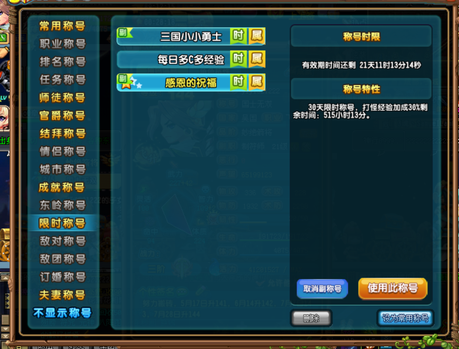 QQ三国SG8651吴国144级男游侠 智力42 智力2 韧性20 抗性50 50 49 天书一百级 VIP7