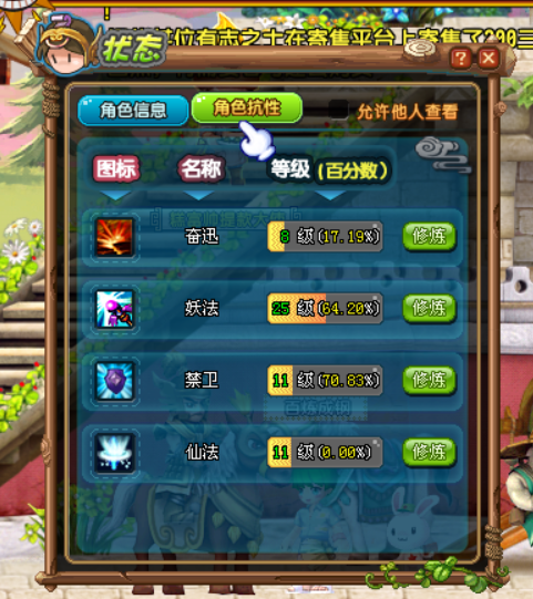 QQ三国SG6834 蜀国100级男仙术 智力9 抗性 8 25 11 11私仓,心法如图。