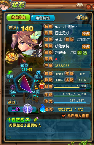 【QQ三国账号】 140级游侠,武力50,韧性40,抗性50 50 55 50级,天书120级,经络5层,VIP7级,炫装450个,有剑侍之意可以随时转剑侍,12月22日清装备卖号