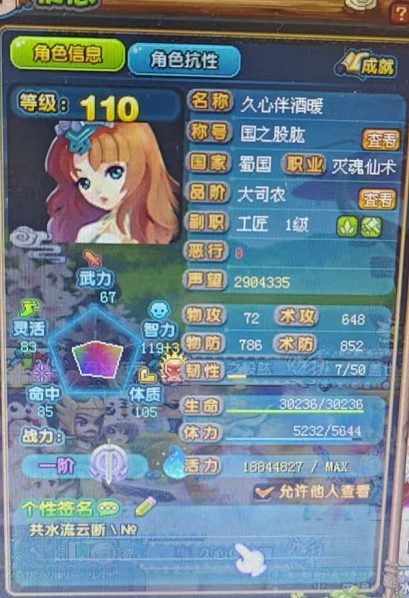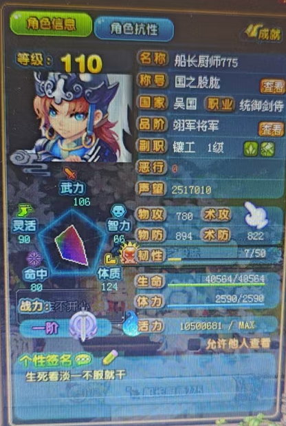 QQ三国SG2490 蜀国120级男剑士武力31韧性22抗性50 50 47 睚眦 虎虎经络 天书6级VIP7 带110级仙术 9级夫妻。110剑士 12结拜