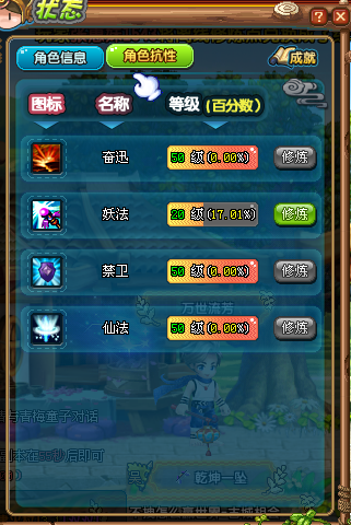 QQ三国SG7265 吴国120级男游侠 武力50 智力18 韧性40 抗性50 50 50 经络2-3层 虎虎生威 VIP7天书8级心法如图