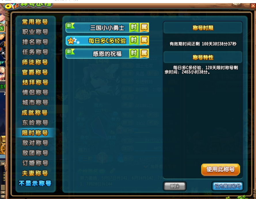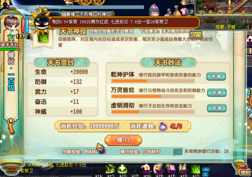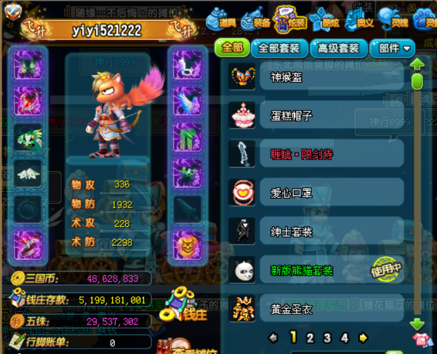 QQ三国SG8651吴国144级男游侠 智力42 智力2 韧性20 抗性50 50 49 天书一百级 VIP7