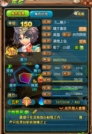 QQ三国SG2161 吴国150级男阴阳 智力50 韧性50 抗性50 53 49 满经络 天书147级 与时、蓝莓、草莓、初恋微甜、晴天彩虹、水晶框、流年、爱の钥匙、玉箫、罗密欧、珠光白、原职业仙术VIP7