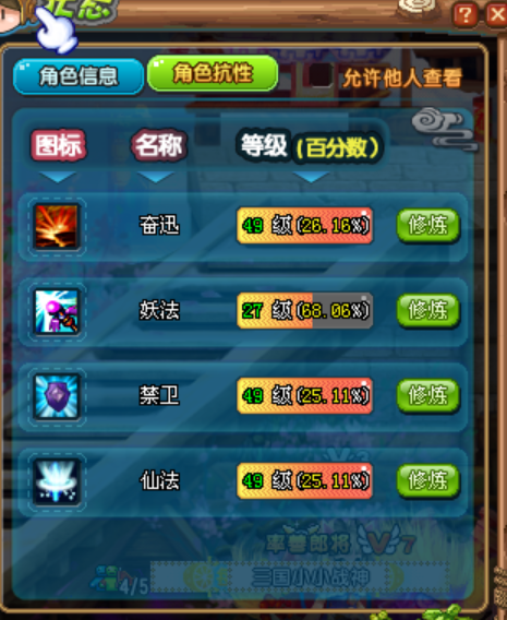 QQ三国SG1818 男79游侠。 魏国。武力50 韧性25 抗性49 49 49 活力616382 VIP等级7 炫装数量298 如图【官方截图】